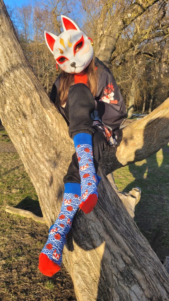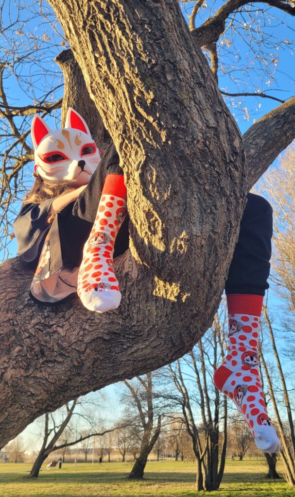 YOKAI by MiKU – Mia kitsune maskiga puu otsas KITSUNE sokkidega