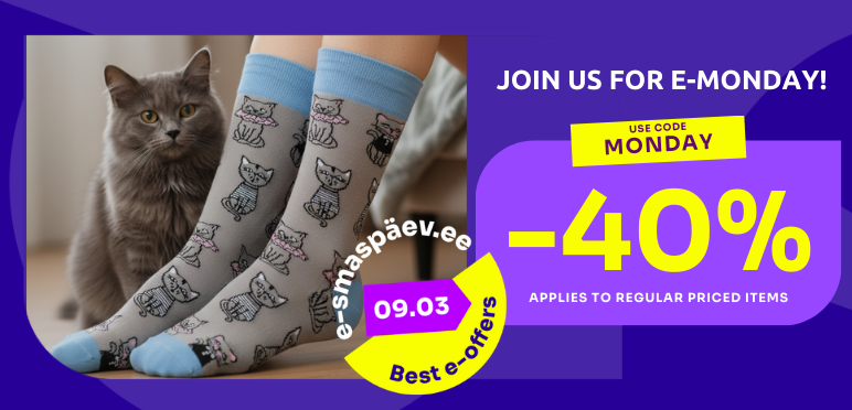 The Sokisahtel webshop is waiting for you every day, from morning until the next morning. Our webshop is the best place to find the socks you like, let it be striped socks, multicolored, monochromatic socks or socks with a picture of a cute cat. Find your new favorite socks even at night! In the webshop, our product range is the largest, here we add new products every day, especially the last pairs and other great offers at a good price.